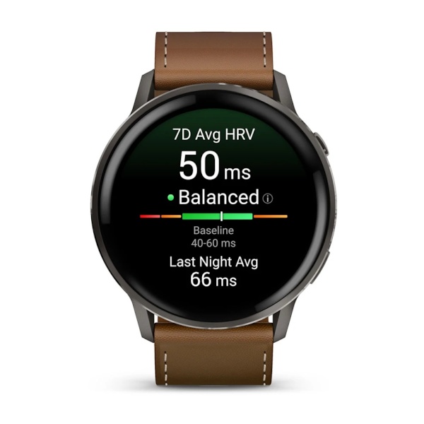 Ведите более здоровый образ жизни благодаря расширенным функциям мониторинга состояния здоровья, таким как мониторинг энергии Body Battery™, уровня стресса, пульсоксиметр и отслеживание женского здоровья, включая оценку овуляции в прошлом, и многое другое